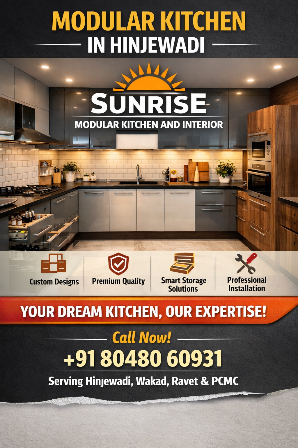 If you’re searching for a “modular kitchen in Hinjewadi near me”, Sunrise Modular Kitchen and Interior is your one-stop destination for modular kitchens, wardrobes, and complete home interiors.